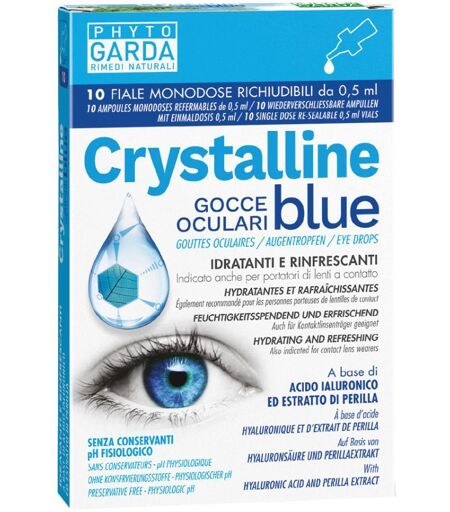 CRISTALLINO GOCCE OCULARI BLU - - IDRATANTI e RINFRESCANTI Indicato anche per lenti a contatto - - - - DESCRIZIONE: Dispositivo medico CE. Gocce oculari ad uso oftalmico, costituito da una soluzione sterile, ad alta biocompatibilità, a pH fisiologico e priva di conservanti. Contiene un estr… ...