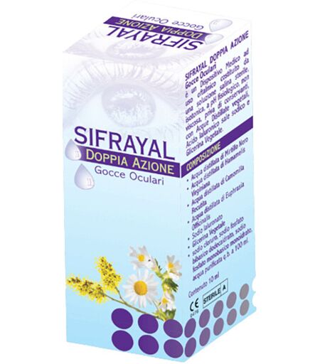 SIFRAYAL DOPPIA AZIONE - Descrizione Sifrayal Doppia Azione è un collirio per occhi stanchi, arrossati e affaticati, che svolge un'importante funzione di protezione e sollievo. Lubrifica, rinfresca e allevia situazioni di discomfort oculare e secchezza lieve e occasionale. Attenua sintomi di arross… ...