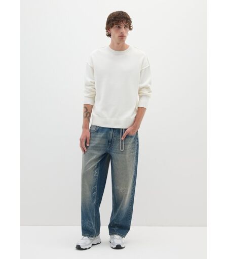 B.ANGEL, Maglione In Puro Cotone Bianco Regular Fit, Uomo, Bianco, Taglia: L