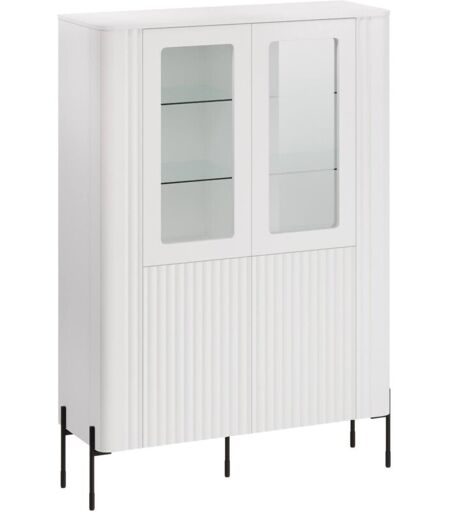DMORA Vetrina Cimino, Vetrinetta da soggiorno con due ante e dettaglio in vetro, Rialzato da terra, 110x40 h160 cm, Bianco