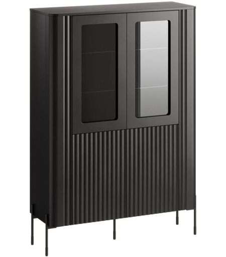 DMORA Vetrina Cimino, Vetrinetta da soggiorno con due ante e dettaglio in vetro, Rialzato da terra, 110x40 h160 cm, Nero