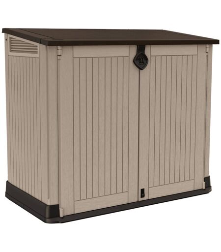 DMORA - Armadio da esterno Gander, Mobile outdoor, Mobiletto giardino multiuso, Contenitore per balcone o garage, 132x72 h114 cm, Beige