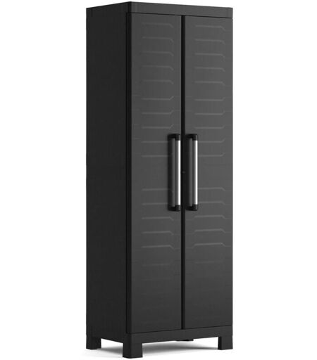 DMORA Armadio da esterno Terrebonne, Mobile outdoor, Mobiletto giardino multiuso, Contenitore per balcone o garage, Made in Italy, 65x45 h182 cm, Nero
