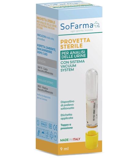 So.Farma.Morra Spa Provetta Sterile, Analisi delle Urine, Vacutest 9ml, Confezione singola