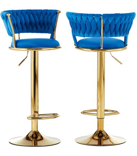 BAKAJI - Set 2 Sgabelli Cucina Bar Schienale Intrecciato in Velluto Blu e Struttura Oro
