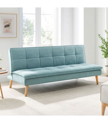 BAKAJI Divano Letto Reclinabile 3 Posti Ergonomico in Tessuto Celeste con Gambe Legno