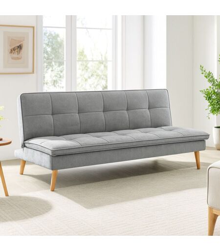 BAKAJI Divano Letto Reclinabile 3 Posti Ergonomico in Tessuto Grigio con Gambe in Legno