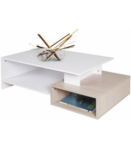 BAKAJI - Tavolino Divano Salotto Rettangolare Design Moderno Legno 4 Ripiani Bianco Oak