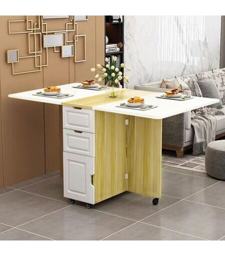 BAKAJI Tavolo Tavolino Pranzo Mobile Cucina Pieghevole Cassetti Salvaspazio con Ruote