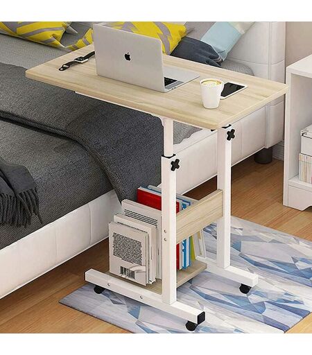 BAKAJI - Tavolo Scrivania Porta Pc Computer Regolabile Tavolino Letto Divano Ruote Beige