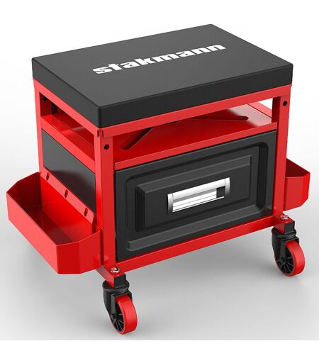STAKMANN Sgabello Mobile da Officina con Cassetto Porta Attrezzi Sedia Meccanico Utensili