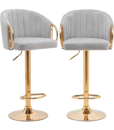 BAKAJI - Set 2 Sgabelli da Cucina Altezza Regolabile in Velluto Grigio e Struttura Oro