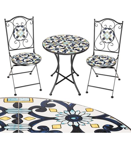 BAKAJI - Set Tavolo e Sedie Pieghevoli Tavolino Design Mosaico Blu Arredo Esterno Giardino