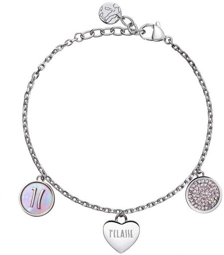 Bracciale In Acciaio Con Pendenti Con Cristalli E Madreperla. Cm 16 + 3 Del Brand Alviero Martini Prima Classe Da Donna, Della Collezione Via Condotti. La Referenza È: Acj0033st, Materiale Gioiello: Acciaio, Argento 925, Bigiotteria, Oro, Pelle; Tipo Di ...