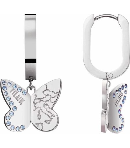Orecchini Da Donna Di Alviero Martini Prima Classe Della Collezione Papillons. Orecchini Pendenti In Acciaio Color Argento Con Geo Map Incisa E Cristalli Bianchi.Chiusura: A Incastro. Simbolo: Farfalla La Referenza È Acj0147st, Materiale Gioiello: ...