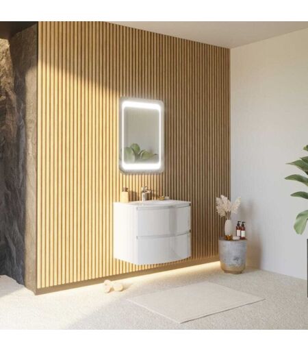 KIAMAMI VALENTINA - Mobile Bagno Curvo Sospeso 70Cm Bianco Lucido Specchio Led 80X60 Los Angeles