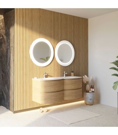 KIAMAMI VALENTINA - Mobile Bagno Sospeso Curvo Da 140Cm In Rovere Doppio Lavabo In Resina Los Angeles