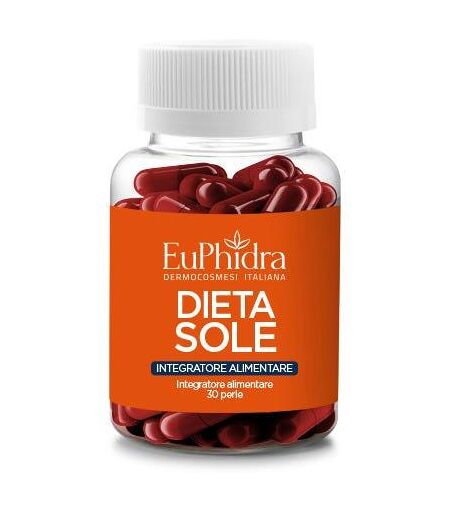 Euphidra Dietasole è un integratore alimentare che contribuisce alla protezione delle cellule dallo stress ossidativo causato dall’esposizione ai raggi UV e prepara la pelle ad una migliore e più duratura abbronzatura. Integratore alimentare composto da una miscela di nutrienti che può risultare utile in caso di aumentato fabbisogno di tali nutrienti. All'interno di ogni perla troviamo:Vitamina A. Aiuta la salute della pelle.Vitamina E. Contribuisce alla protezione delle cellule dallo stress ossidativo.Olio di Borragine. Ricco di acidi grassi omega-6, contribuisce al trofismo e alla funzionalità della pelle. Non eccedere le dosi raccomandate per l'assunzione giornaliera. Tenere fuori dalla portata dei bambini al di sotto dei tre anni di età. Gli integratori non vanno intesi come sostituti di una dieta variata, equilibrata e di un sano stile di vita. La data di scadenza indicata si riferisce al prodotto in confezione integra, correttamente conservata. Conservare in luogo fresco e asciutto, al riparo dalla luce. Per le persone sotto controllo medico, le donne in gravidanza e in allattamento si consiglia di sentire il parere del medico prima di assumere il prodotto. INVOLUCRO: GELATINA ALIMENTARE, AGENTE DI RESISTENZA: GLICEROLO, COLORANTE: E172. CONTENUTO: OLIO DI BORRAGINE (BORAGO OFFICINALIS, L.) TITOLATO AL 20% IN ACIDO GAMMA LINOLEICO, OLIO DI CARTAMO, COENZIMA Q10 (UBIDECARENONE), VITAMINA E (D,L ALFA-TOCOFEROLO ACETATO), OLIO DI GIRASOLE, LUTEINA, ANTIOSSIDANTE: D-TOCOFEROLI, STABILIZZANTE: BIOSSIDO DI SILICIE, BETACAROTENE, EMULSIONANTE: LECITINA DI SOIA. ...