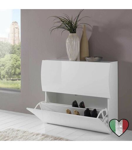 STILPROJECTSTORE - CASA E UFFICIO Stilprojectstore-casa E Ufficio - Scarpiera Slim 2 Ante a Ribalta in Legno Bianco Lucido 101x81 cm Onda Mobili Scarpiere Multiuso StilProjectStore.com