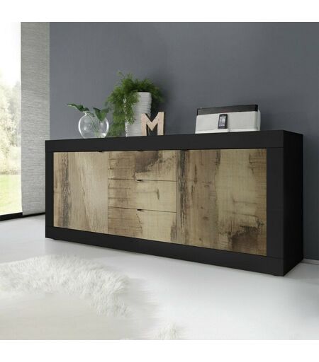 STILPROJECTSTORE - Credenza soggiorno nera, 2 ante e 3 cassetti color Pero l. 210 cm - Basic