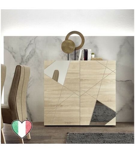 STILPROJECTSTORE - CASA E UFFICIO Credenza soggiorno Rovere Samoa, 2 Ante con inserti a specchio L. 121 cm - Lisbona