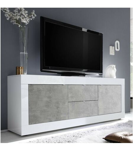 STILPROJECTSTORE Credenza moderna bassa da soggiorno Bianco laccato lucido, 2 ante e 2 cassetti color Cemento - Basic
