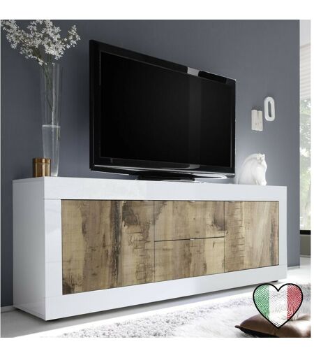 STILPROJECTSTORE Credenza moderna bassa per soggiorno Bianco laccato lucido, 2 ante e 2 cassetti color Pero - Basic