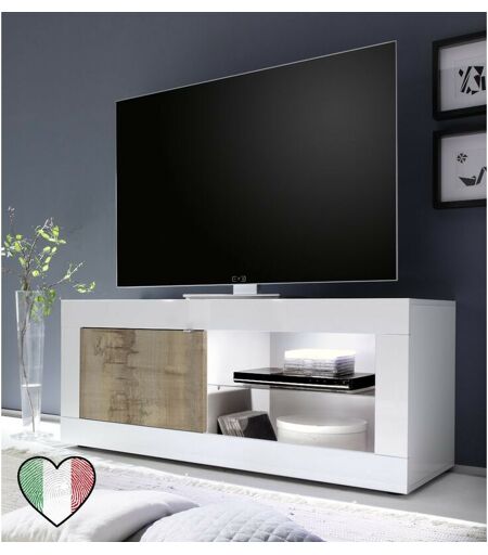 STILPROJECTSTORE - CASA E UFFICIO Stilprojectstore-casa E Ufficio - Mobile Porta tv Bianco laccato lucido, 1 anta pero e vano con mensola vetro l. 140 cm - Basic