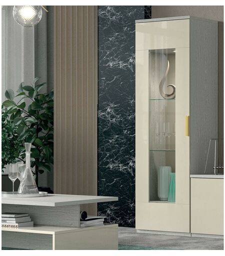 Vetrina quercia bianca 1 anta vetro - Dream Vetrina 1 anta con maniglia - Dream La Vetrina Soggiorno Moderna Quercia Bianca 1 Anta Vetro Dream offre un'esposizione elegante per i tuoi oggetti preziosi. Con un design contemporaneo, quercia bianca e vetro trasparente, questa vetrina aggiunge stile e funzionalità al tuo spazio living. Mobile vetrina da soggiorno. Struttura melaminico quercia bianca, sp. 18 mm. Mobile alto composto da 1 anta in vetro spessore 4 mm. Compreso nel prezzo 1 faretto a Led. Mobile fornito smontato con libretto di istruzioni. piana spessore 25 mm cerniere ammortizzate cassetto guide a quadro ammortizzate anta laccata beige, vetro sp. 4 mm 2 ripiani fissi interni in legno 2 ripiani regolabili interni in vetro sp. 8mm Kit 1 faretto Led 100% Made in Italy DIMENSIONI: Larghezza 60,5cm Profondità. 47 cm Altezza 195 cm OPZIONI: Maniglia color oro o color argento Caratteristiche Tecniche: Design Moderno: Linee pulite e minimaliste per un look contemporaneo. Quercia ...