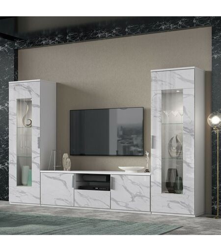 STILPROJECTSTORE - CASA E UFFICIO Soggiorno bianco laccato lucido effetto marmo con Porta Tv - Dream