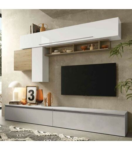 STILPROJECTSTORE - CASA E UFFICIO Parete attrezzata soggiorno comp 17, colore bianco/gesso/cadiz - Infinity