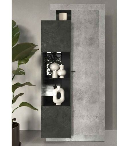 STILPROJECTSTORE - Credenza vetrina soggiorno 2 ante L87x188x42 cm - Freedom cemento / piombo