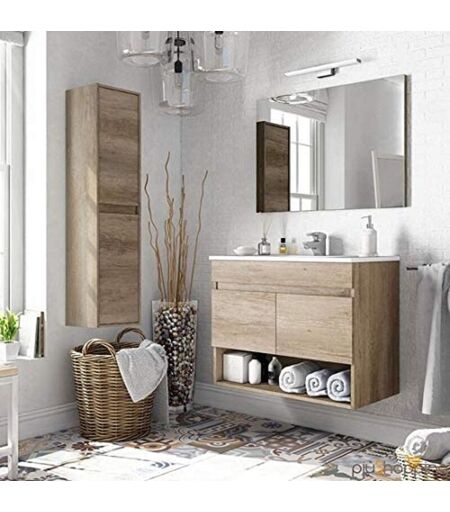 CAPALDO Mobile Bagno cm 80 Rovere venato con lavabo, specchio e colonna inclusi