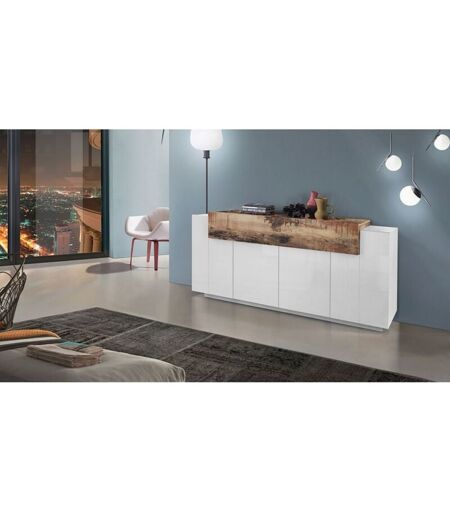 AHD AMAZING HOME DESIGN Moderna Madia Bianco e Acero Credenza con 4 Ante Mobile per Soggiorno