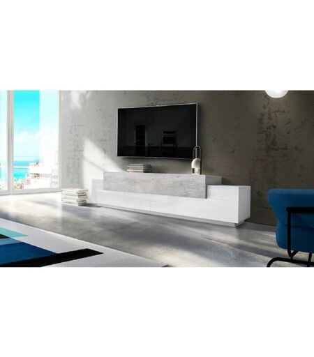 AHD AMAZING HOME DESIGN - Mobile Porta tv Basso con Ante a Ribalta 240 Bianco Cemento Credenza Salone