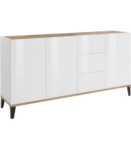 AHD AMAZING HOME DESIGN Madia 3 ante 3 cassetti per Soggiorno Moderna 160x40x82cm - artemis - Colore: bianco laccato/ acero pereira