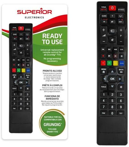 Il telecomando universale per TV Grundig .Telecomando universale per tutti i televisori Grundig costruiti a partire dal 2000 .Non richiede programmazione. sufficiente inserire le batterie ed pronto all uso .Tutte le principali funzioni per TV Smart e 3D SPECIFICHE: :TIPO= Telecomando Universale per tutte le TV Grundig prodotte dopo l anno 2000. Tutte le funzioni standard e avanzate e tutti i tasti del telecomando originale sono incluse. Tasti grandi e morbidi :CONFIGURAZIONE= Pronto all uso senza programmazione, basta inserire le batterie :CONTENUTO BLISTER= Telecomando, manuale di istruzioni e garanzia 2 anni:PESO= 83 g:DIMENSIONI= 20,5 x 4,5 x 2,0 cm:BATTERIE= 2 x 1,5V – AAA (non incluse):Scheda tecnica=Clicca Qui ...