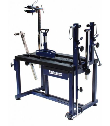 BANCO DA LAVORO PRO TOUR ART.BS101 Bicisupporto.Innovativa officina professionale da banco.Dotato di tutti i comfort per il montaggio e la manutenzione di ogni tipo di bicicletta.Postazione doppia: panca con fino a 3 punti di attacco bici da un lato e morsa girevole 360° regolabile in altezza dall'altro.In dettaglio: capiente cassetto, piastra posteriore per supporto ruote.Regolazione e fissaggio del tubo sella e messa in sicurezza con il telaio della cyclette dietro il movimento centrale.E' integrato con vari tipi di prese e adattatori per il fissaggio di biciclette con o senza ruota anteriore e/o posteriore.Bussole per fissaggio forcelle bici con foro passante anteriore e/o posteriore.Supporti specifici per BMX.Porta attrezzi per lavabo Grande.Supporto per supporto manubrio durante la manutenzione dello sterzo.DETTAGLI:Altezza (cm):102 Base (cm):57,5 x 105.Imballo (cm):65x18x103 65x18x96, Peso (kg):47. ...