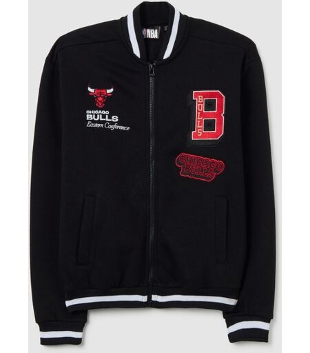 NBA, Felpa Da Bambino In Misto Cotone Nero Regular Fit Con Logo Chicago Bulls, Unisex, Nero, Taglia: 11-12