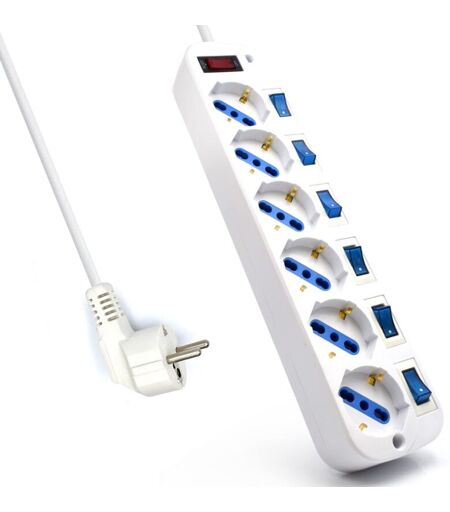 Multipresa Elettrica a 6 Posti Ita/Schuko, Interruttori Indipendenti su Ogni Presa, Interruttore Generale, 3500W, cavo 3.0 mt. ...