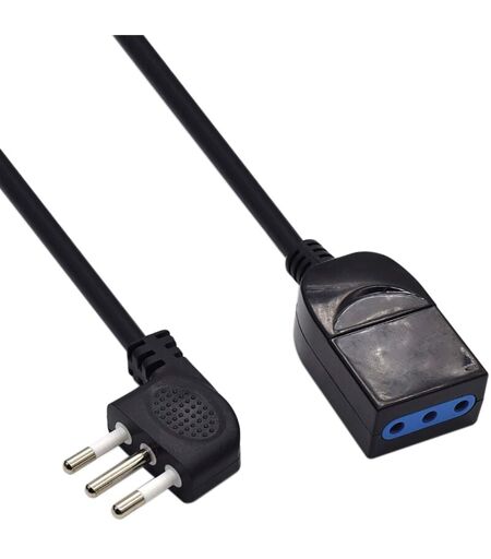 EWENT EW3803 - Prolunga elettrica nera 5mt, spina Italiana 10A 90° salvaspazio, presa italiana 10A, cavo H05VV-F 3x0,75mm2 presa con protezione bambini