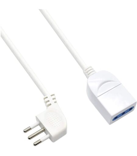 EWENT - EW3800 - Prolunga elettrica bianca 3mt, spina Italiana 10A 90° salvaspazio, presa cavo H05VV-F 3x0,75mm2 con protezione bambini
