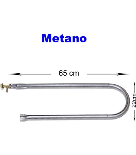 > Bruciatore a gas per barbecue con rubinetto a scelta , ideale per barbecue con bistecchiere di ghisa e pietre ollari/laviche. Bruciatori a U disponibili in tre misure : lunghezza 48 cm - larghezza 12 cm lunghezza 55 cm - larghezza 22 cm lunghezza 65 cm - larghezza 22 cm Bruciatori dritti disponibili in due misure : lunghezza 50 cm lunghezza 100 cm Distanza rubinetto / inizio fori 12 cm circa Lunghezza fiamma bruciatori curvi : 29 cm - 32,5 cm - 42 cm Lunghezza fiamma bruciatori dritti : 31,5 cm - 81 cm Passo filetto per rubinetto M10x1 Rubinetti in ottone per GPL o Metano disponibili per tutti i bruciatori ...