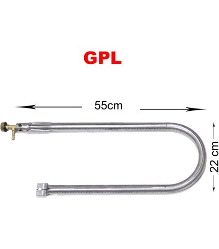 > Bruciatore a gas per barbecue con rubinetto a scelta , ideale per barbecue con bistecchiere di ghisa e pietre ollari/laviche. Bruciatori a U disponibili in tre misure : lunghezza 48 cm - larghezza 12 cm lunghezza 55 cm - larghezza 22 cm lunghezza 65 cm - larghezza 22 cm Bruciatori dritti disponibili in due misure : lunghezza 50 cm lunghezza 100 cm Distanza rubinetto / inizio fori 12 cm circa Lunghezza fiamma bruciatori curvi : 29 cm - 32,5 cm - 42 cm Lunghezza fiamma bruciatori dritti : 31,5 cm - 81 cm Passo filetto per rubinetto M10x1 Rubinetti in ottone per GPL o Metano disponibili per tutti i bruciatori ...