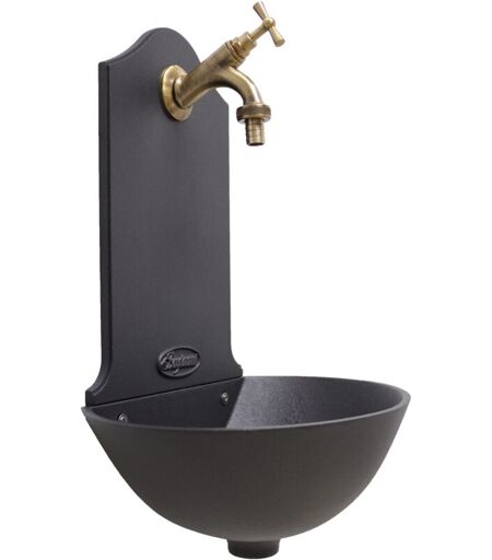 FONDERIA BONGIOVANNI - Fontana a muro Malaga colore ghisa per casa e giardino con rubinetto in ottone brunito