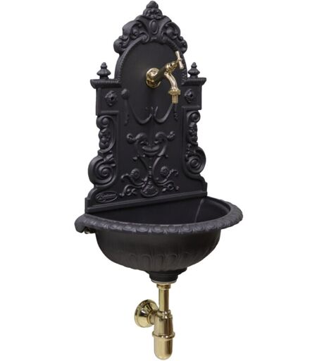 FONDERIA BONGIOVANNI - Fontana a muro Granada grigio ghisa per casa giardino balcone parete con rubinetto e sifone in ottone lucido