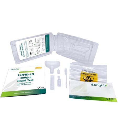 Test rapido per l’antigene COVID-19 (fluido orale) per l'autotest Descrizione Il test rapido per l’antigene COVID-19 (fluido orale) è un kit del test monouso destinato a rilevare il nuovo coronavirus SARS-CoV-2 che causa COVID-19 nel fluido orale umano. Questo test è concepito per l'uso domestico con campioni di fluido orale auto-raccolti da individui sintomatici sospettati di essere infettati da COVID-19. Il test permette di ottenere solo risultati preliminari, la conferma finale dovrebbe essere basata sui risultati diagnostici clinici. Il test rapido per l’antigene COVID-19 (fluido orale) è un test immunologico qualitativo basato su membrana per la rilevazione degli antigeni SARS-CoV-2 in campioni di fluido orale umano. Il dispositivo del test contiene anticorpi anti-SARS-CoV-2. Modalità d'uso Rimuovere l'imbuto e il tubo di plastica, montare l'imbuto sul tubo. Tossire profondamente 3-5 volte. Indossare una maschera per il viso o coprire la bocca e il naso con un fazzoletto quando si tossisce e mantenere le distanze con le altre persone. Sputare delicatamente il fluido orale nell'imbuto. Il fluido orale (senza bolle) dovrebbe raggiungere appena l'altezza della linea della scala. Se non c'è abbastanza liquido orale raccolto, ripetere i passaggi di raccolta dei campioni. Posizionare l'imbuto usato nella borsa di sicurezza biologica. Strappare per aprire il tampone e aggiungere l'intero tampone nella provetta con fluido orale. Montare la punta del tubo sul tubo. Strizzare delicatamente la provetta 10-15 volte per mescolare bene. Rimuovere il dispositivo del test dalla busta di alluminio sigillata ed utilizzarlo entro un'ora. I migliori risultati si ottengono se il test viene eseguito immediatamente dopo aver aperto la busta di alluminio. Posizionare la cassetta test su una superficie piana e livellata. Capovolgere la provetta e aggiungere 2 gocce di soluzione al pozzetto del campione (S) del dispositivo di analisi, quindi avviare il timer. Non spostare la cassetta del test durante lo sviluppo del test. Leggere il risultato dopo 15 minuti. Non interpretare il risultato dopo 20 minuti. Una volta completato il test, posizionare tutti i componenti del kit del test in una busta di sicurezza biologica smaltire secondo le normative locali. Non riutilizzare i componenti usati del kit. Lavare accuratamente le mani dopo lo smaltimento del test. - Interpretazione dei risultati: POSITIVO: compaiono due linee colorate. Una linea colorata dovrebbe essere nella regione di controllo (C) e un'altra linea colorata dovrebbe essere nella regione del test (T). NEGATIVO: una linea colorata appare nella regione di controllo (C). Nessuna linea colorata apparente appare nella zona della linea del test (T). NON VALIDO: la linea di controllo non viene visualizzata. Un volume di campione insufficiente o una procedura errata sono le ragioni più probabili dell’assenza della linea di controllo. Rivedere la procedura e ripetere il test con un nuovo test o contattare il medico o... ...