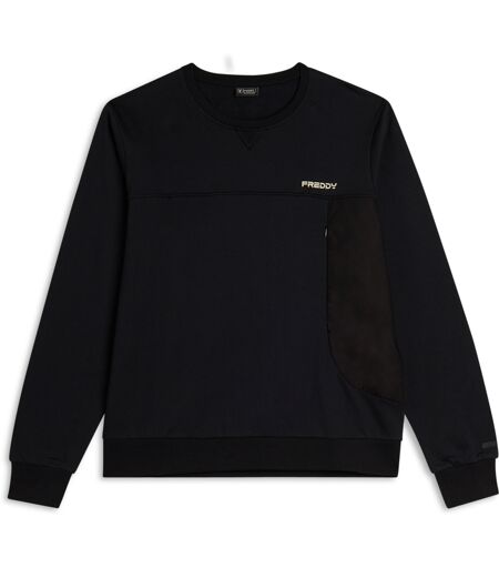 Freddy Felpa Uomo Girocollo in French Terry con Taschino Zippato Nero Uomo Extra Large
