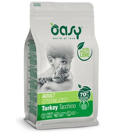 OASY Gatto Adult Sterilized con Tacchino da 1,5 Kg -