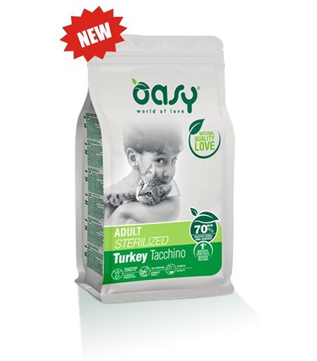 wonderfood spa Oasy Gatto Lifestage Adulto Sterilizzato Tacchino 300 Gr New Pack